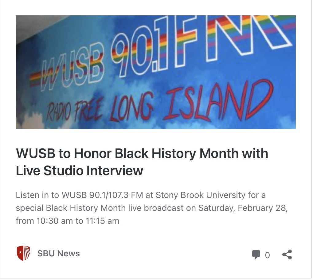 Join us on Saturday, February 28th, from 10:30AM to 11:15am on WUSB 90.1 FM, as Dr. Charles Bevington and Chiitra Wells provide an overview of local Black History and discuss initiatives aimed at raising awareness about the significance and impact of this nearly forgotten area settlement, which played a crucial role in Brookhaven’s economic development, before disappearing by 1920. SBU MARCOM Fellow, Lily Miller shared mics as co-host.